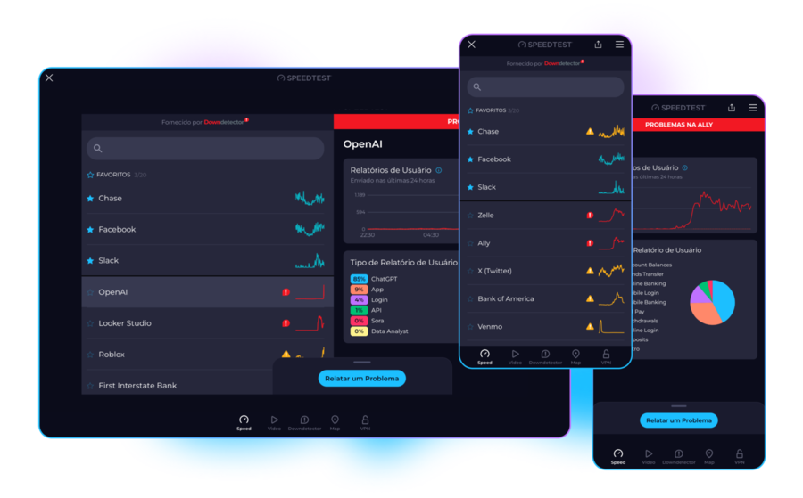 Monitorize e comunique problemas com os seus serviços favoritos em tempo real utilizando o Downdetector, a plataforma mais popular do mundo para monitorizar falhas e problemas de conectividade.